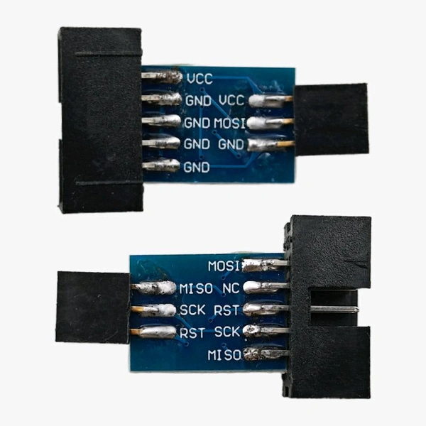 Converts 10-pin ISP to 6-pin ISP for AVR microcontrollers