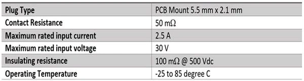 Specifications of the Female DC Power Supply Connector